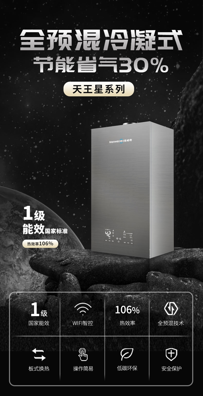 行業(yè)*預(yù)全混燃燒冷凝技術(shù),達(dá)到國家一級能效,有效回收潛熱熱效率高達(dá)106%,NOX達(dá)國標(biāo)新五級標(biāo)準(zhǔn),全密閉負(fù)壓燃燒,運(yùn)行噪音小于45db,21重安全保護(hù)功能,全方位監(jiān)控運(yùn)行狀況,安全無憂。